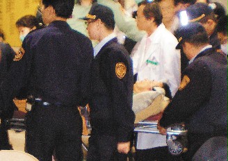 為了避免陳水扁曝光,救護(hù)車(chē)直接倒車(chē)進(jìn)入急診處把他放下。滿(mǎn)臉胡渣的陳水扁,躺在救護(hù)車(chē)的推床上,身體用橘黃色被單蓋著,手、腳未上戒具。他戴著眼鏡躺在推床上,沒(méi)有慷慨激昂的高分貝呼喊,他始終緊閉雙眼,不發(fā)一語(yǔ)。