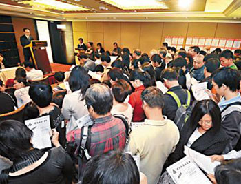 25日舉行的一場以銀主盤為主的拍賣場,即吸引接近150人到場準(zhǔn)備“買便宜樓”,不但逼爆整個會場,遲到的準(zhǔn)買家更不惜在會場門口人群中突圍舉手爭逐,部分單位就出現(xiàn)數(shù)名準(zhǔn)買家,經(jīng)十多口價才奪得心頭好的現(xiàn)象。