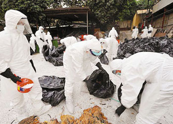 漁護(hù)署、衛(wèi)生署與食環(huán)署9日下午舉行禽流感督導(dǎo)委員會(huì)會(huì)議,香港食物及衛(wèi)生局局長(zhǎng)周一岳會(huì)后會(huì)見記者時(shí)稱,因應(yīng)在香港農(nóng)場(chǎng)發(fā)現(xiàn)禽流感病毒,決定把香港禽流感的戒備應(yīng)變級(jí)別提升至嚴(yán)重級(jí)別,并把肇事雞場(chǎng)列為疫點(diǎn),雞場(chǎng)方圓3公里范圍內(nèi)列為疫區(qū),須銷毀疫區(qū)內(nèi)所有雞只,涉及2個(gè)雞場(chǎng)共8萬只活雞。