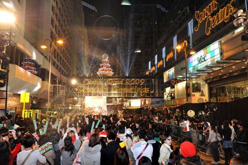 尖沙咀文化中心一帶,不少情侶、年輕人和一家大小戴上圣誕帽和頭飾,拿著閃燈道具,魚貫前往海旁拍攝對岸燈飾,踏入零時的一刻,群眾圍住鐘樓自發(fā)倒數(shù)。在人來人往的街道上,間中有詩歌班獻唱圣詩報佳音,市民暫時停下腳步,放松心情,四處洋溢著歡騰氣氛。至于平日集結(jié)外國人士的中環(huán)蘭桂坊,今夜不再是白領的天地,家長帶同子女到該處湊熱鬧,感受一下西方節(jié)日的氣氛。