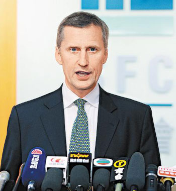 證監(jiān)會行政總裁韋奕禮22日傍晚臨時會見傳媒,公布該會與新鴻基投資服務達成協(xié)議的消息。他指出,這次處理方法所達致的成果,符合投資者的最佳利益,對這宗個案所達致的結果感到相當滿意。