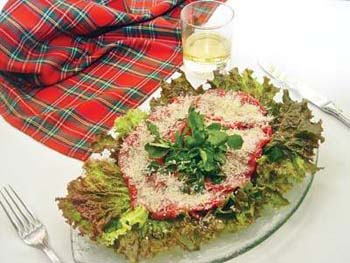 這道菜式是蘇格蘭、意大利等地的風味食品,選用頂極牛肉片,用新鮮的檸檬汁和成顆現(xiàn)磨的胡椒做調(diào)料,胡椒的味道更香濃,帶出蘇格蘭菜式的地道風味。