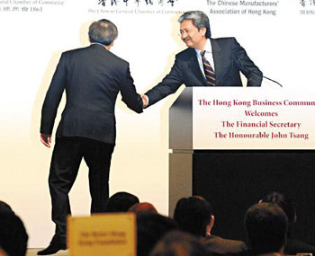 中新網(wǎng)3月10日電 香港《星島日?qǐng)?bào)》今日在“要聞”欄目刊發(fā)報(bào)道稱,香港財(cái)政司司長(zhǎng)曾俊華9日出席香港總商會(huì)舉辦的商界聯(lián)席午餐時(shí),否認(rèn)自己在預(yù)算案推出的措施“孤寒”,強(qiáng)調(diào)預(yù)算案必須審慎。面對(duì)環(huán)球經(jīng)濟(jì)急速惡化,香港經(jīng)濟(jì)仍未見(jiàn)底,因此需要維持足夠的儲(chǔ)備,應(yīng)對(duì)未來(lái)財(cái)政上的挑戰(zhàn)。