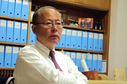 4月29日下午,記者走進(jìn)日本參議院議員、民主黨國會對策委員會常務(wù)副委員長、民主黨外委會主任川上義博的辦公室,首先看見書架上擺放著中共總書記胡錦濤與他在人民大會堂握手的照片。