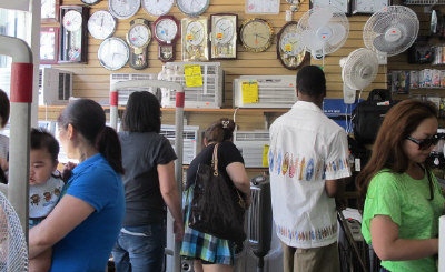 法拉盛緬街上紐約家電的老板鐘先生表示,近兩周的高溫,讓空調(diào)和風(fēng)扇的銷路都不錯,尤其是空調(diào),個別天數(shù)突破百臺已經(jīng)不是問題,而為了準(zhǔn)備更高氣溫而帶來的銷售高峰,他還備足了上千臺空調(diào)的貨源。