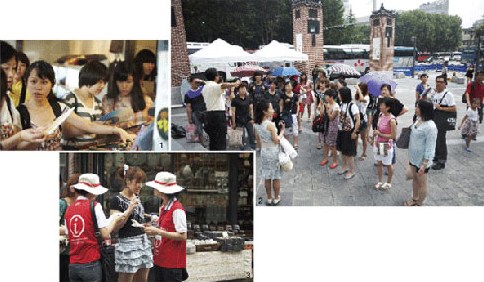 一行人抵達景福宮的時間是下午2時45分,比計劃晚了40分鐘。原因是部分游客在仁寺洞購物拖延了時間。導游張某開始對景福宮進行介紹,但幾乎沒有人聽。張某說:“來韓國旅游的游客大都是大學畢業(yè)的二、三十歲女性,在中國引領消費文化的白領女性。他們比起文化遺產(chǎn),更關心購物。”