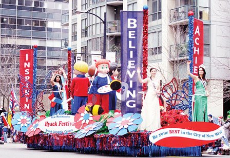 此次巡游最觸目的是溫冬奧籌委會(huì)(VANOC)行政總裁弗朗(John Furlong)、公民服務(wù)廳長(zhǎng)麥妮爾(Mary McNeil)及超過(guò)200名冬奧委會(huì)的義工組成的巡游隊(duì)伍,穿著藍(lán)色冬奧制服浩浩蕩蕩前行,受到市民鼓掌歡迎。
