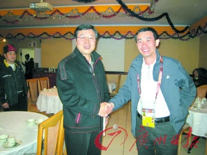 “你好!沒有想到我們又見面了。”昨天晚上,記者邂逅到中國駐約翰內(nèi)斯堡領(lǐng)事館房利總領(lǐng)事,記者數(shù)月前來南非作賽前采訪時(shí),房總領(lǐng)事就曾經(jīng)親切接見過本報(bào)記者,并與記者共進(jìn)晚餐。這次約堡再度重逢,相當(dāng)熱情。