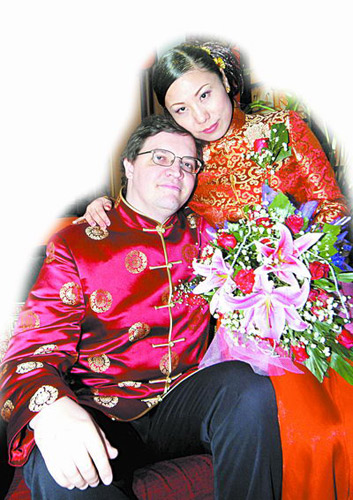 于是當(dāng)Dan向她求婚時(shí),Eve就應(yīng)允了。那邊的Dan在網(wǎng)絡(luò)上立即發(fā)送“I love you so”并跟著一連串笑臉。更令人吃驚的是,Dan當(dāng)時(shí)只有5000元存款,卻用4800元定做了結(jié)婚戒指,并向母親借錢買了機(jī)票,毫不猶豫地飛到中國(guó),當(dāng)時(shí)他只知道Eve住在杭州,連具體的地址都搞不清楚,為此Eve后來(lái)還開(kāi)玩笑地對(duì)Dan說(shuō),如果當(dāng)時(shí)我反悔了,不去機(jī)場(chǎng)接你,你在中國(guó)可就無(wú)家可歸了。