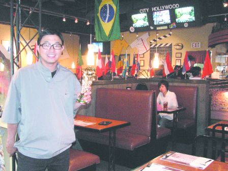 他說為增加氣氛和吸引顧客,該餐廳除增加安裝多部電視機(jī)外,另購買多款和“世界杯”有關(guān)的飾物布置,包括一面內(nèi)有今屆“世界杯”主辦國(guó)南非國(guó)旗,和參賽國(guó)家國(guó)旗的官方旗幟,曾得過世界杯冠軍國(guó)家的國(guó)旗如巴西﹑阿根廷﹑英國(guó)﹑法國(guó)等﹑“世界杯”冠軍獎(jiǎng)杯,又在餐廳內(nèi)插滿多支參賽國(guó)家的小國(guó)旗。鄭永東說為提高顧客興趣,在世界杯舉行期間,該餐廳會(huì)設(shè)計(jì)多款以足球明星為名之飲品和食物,務(wù)求客人在該餐廳享用食物時(shí),更有“世界杯”感。
