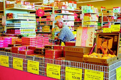 圣蓋博谷華人聚居城市華資超市,月餅上周開始上市,本地不少糕餅廠家也從本周開始推出月餅專柜。華資月餅進口商表示,外州訂單,已從本周開始發(fā)貨,預(yù)計下周起全面上架。