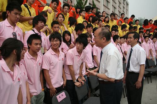 中新網(wǎng)7月22日電(董方) 北京華文學(xué)院2009年暑期漢語夏令營活動自7月初正式拉開帷幕以來,吸引了來自法國、意大利、英國、美國等歐美國家和印尼、泰國等東南亞國家的6個團隊共225名華裔青少年參加。7月22日早上,身著夏令營服裝的學(xué)生們早早就聚集在學(xué)校的操場上,由于身處不同的團隊,學(xué)員們大都互不相識,然而大家都按耐不住激動的心情,因為就在這里他們將留下第一張“全家!。