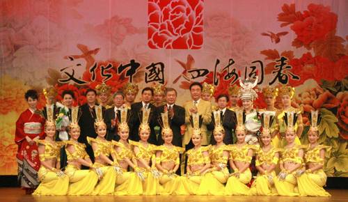 “文化中國•四海同春”2010年春節(jié)亞洲藝術(shù)團團長、國僑辦黨組成員熊昌良、中國駐大阪總領(lǐng)事館總領(lǐng)事鄭祥林與當(dāng)?shù)厝A人華僑和日本觀眾一同觀看了演出。鄭祥林熱烈歡迎給關(guān)西地區(qū)華僑華人帶祖(籍)國問候和祝福的“四海同春”藝術(shù)團。他表示,藝術(shù)團精心挑選的節(jié)目里凝聚著祖(籍)國母親對海外游子的親情和關(guān)愛,在春節(jié)和元宵佳節(jié)期間為華僑華人增添了更多的喜慶氣氛,讓華僑華人倍加思念祖(籍)國。