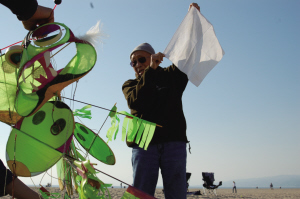 在海灘上放風箏的時間長了,黃齊耀的親友及崇拜者都來看他的風箏。慢慢地,這里的海灘成了一個定時的聚會地,來看風箏的人還自帶食品相互交流,大家談話的主題卻都在風箏老人身上。