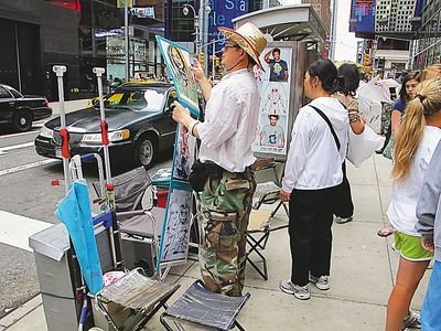 長(zhǎng)期在時(shí)報(bào)廣場(chǎng)為游客畫肖像畫華裔街頭藝術(shù)家們叫苦連天,在48街和7大道路口擺攤的街頭藝術(shù)家魯先生說,恐襲后他每天都出來擺攤,但情況實(shí)在慘淡,他說:“沒有生意比恐襲還可怕。”