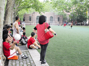 位于格蘭街的羅斯福球場是華埠唯一像個模樣的足球場,是體育會必爭之地,周日上午是華協(xié)體育會踢球,下午則多是華聯(lián)體育會租借。張少偉說,跟4年前一樣,該會在世界杯期間舉辦了“小型世界杯”比賽,共有9支隊伍參賽,今次除華人隊伍之外,還有越南、荷蘭、墨西哥、意大利、韓國等族裔組隊參加,有些隊伍因人數(shù)不夠,大會也批準(zhǔn)隊伍中可有女性球員。