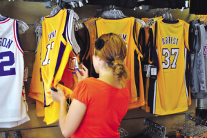在圣蓋博谷地區(qū)經(jīng)營(yíng)一家體育運(yùn)動(dòng)服裝專(zhuān)賣(mài)店的店主告訴記者,湖人在整個(gè)球季的表現(xiàn)很好,給他帶來(lái)了不少的生意。特別是“24”科比、“16”加索爾等熱門(mén)球衣,受到民眾的追捧,一度供不應(yīng)求。(蔚宇)