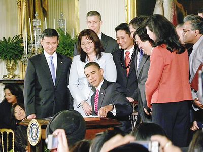 奧巴馬說(shuō),談到亞太裔就是談他的家人,他的妹妹瑪亞(Maya Soetoro-Ng)、妹婿吳加儒(Konrad Ng),以及他們的孩子都是亞太裔,攣営腥A人血統(tǒng),吳加儒是加拿大華裔。奧巴馬也特別贊揚(yáng)他的三個(gè)亞太裔閣員華裔的駱家輝、能源部長(zhǎng)朱棣文、日裔退伍軍人事務(wù)部部長(zhǎng)新關(guān),以及在伊拉克戰(zhàn)爭(zhēng)失去雙腿的陸軍直升機(jī)飛行員、具有華裔血統(tǒng)的退伍軍人部助理部長(zhǎng)譚美.達(dá)克沃斯(Tammy Duckworth)。