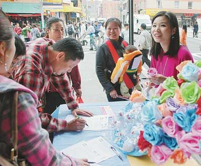 華策會小區(qū)拓展計劃十多名義工當日下午在華埠愛烈治街、科西街和地威臣街的交匯處,免費派發(fā)由MISSTA禮品店贊助的玫瑰花,同時對閩籍新移民進行題為“單身的你,想‘脫光’了嗎?”的問卷調(diào)查,了解新移民的感情狀況。