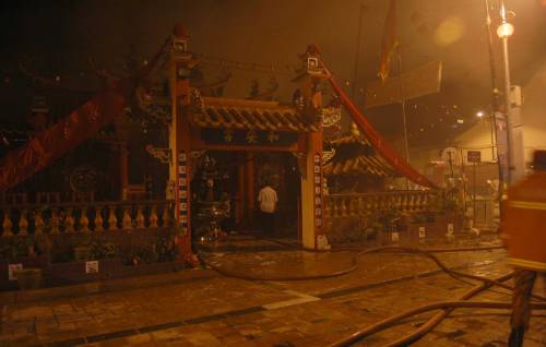 這宗火災(zāi)在22日晚上約9時30分發(fā)生,當(dāng)時雖有民眾發(fā)現(xiàn)廟宇冒出濃煙,看到廟里起火,可是由于廟宇大門深鎖,眾人無法進(jìn)入救火,火勢越燒越猛,民眾立即致電消拯局及警方。根據(jù)現(xiàn)場所見,和安宮的建筑結(jié)構(gòu)并沒有被燒毀,只是內(nèi)部尤其是中間天井處嚴(yán)重被燒毀。