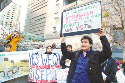 中新網(wǎng)1月21日電 據(jù)美國(guó)《世界日?qǐng)?bào)》報(bào)道,美國(guó)總統(tǒng)奧巴馬上任滿一周年,移民小區(qū)19日在舊金山舉行示威集會(huì)活動(dòng),要求奧巴馬及國(guó)會(huì)立即推動(dòng)移民改革法案,并于今年內(nèi)通過(guò)。