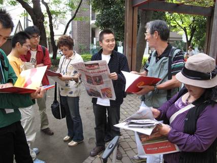 10月4日,日本僑報(bào)社創(chuàng)辦的星期日漢語(yǔ)角舉行第109次交流會(huì)。會(huì)上,剛剛從北京參加國(guó)慶觀(guān)禮回來(lái)的日本僑報(bào)社總編輯、日本湖南人會(huì)會(huì)長(zhǎng)段躍中,向漢語(yǔ)角參加者介紹了10月1日在天安門(mén)廣場(chǎng)舉行的中國(guó)建國(guó)60周年紀(jì)念大會(huì)等一系列國(guó)慶活動(dòng),還傳閱了中國(guó)60華誕慶典的有關(guān)報(bào)道,欣賞了國(guó)慶專(zhuān)題郵票。