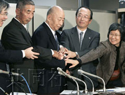 中新網(wǎng)10月23日電 據(jù)日本共同社報(bào)道,日本“西松建設(shè)”公司與二戰(zhàn)中被強(qiáng)擄至日本廣島工地從事過苛勞動(dòng)的中國勞工等23日達(dá)成和解,在東京霞關(guān)的司法記者俱樂部召開的記者會(huì)上,雙方人士一同出席,百感交集的相互握手。