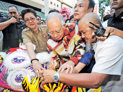中新網(wǎng)2月12日電 據(jù)馬來西亞《光華日?qǐng)?bào)》報(bào)道,馬來西亞首相拿督斯里納吉11日下午在農(nóng)歷新年前訪茨廠街,與各小販商家和普羅大眾拜早年迎接金虎。這也是納吉自去年4月4日上任以來第3度訪茨廠街。