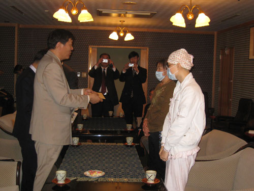 程雯激動(dòng)地對趙大為領(lǐng)事表示:“是祖國和日本各界友人和臺灣同胞救了我,我一定要報(bào)答大家的恩情!背迢┑哪赣H吳國榮不停地流著眼淚,她說:“大家救了我女兒的命,女兒如果病好了,將來一定要報(bào)效祖國,做中日友好的橋梁。”