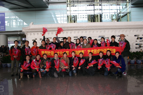 中新社北京3月9日電 (南若然)9日中午,“文化中國(guó)·四海同春”赴歐洲藝術(shù)團(tuán)結(jié)束了在法國(guó)、英國(guó)、比利時(shí)和意大利的慰?jī)S演出后,返回北京。