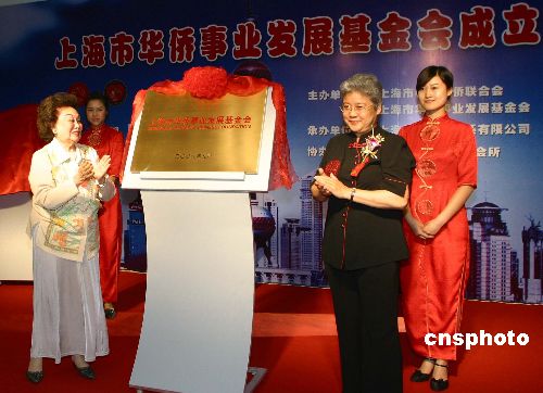 九月十八日晚,“上海市華僑事業(yè)發(fā)展基金會”在上海舉行成立儀式,全國政協(xié)港澳臺僑委員會副主任唐聞生與美國國際合作委員會主席陳香梅女士(左)為該基金會揭牌。與此同時(shí),該基金會網(wǎng)站開通。中新社發(fā) 潘索菲 攝