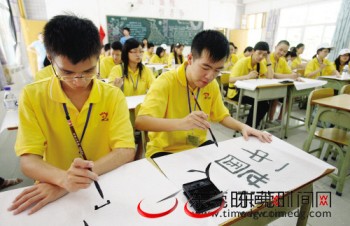 大部分的“僑二代”、“僑三代”說這是第一次拿毛筆,他們都認真地聽著老師教如何拿筆,注意寫字時的閉氣與呼吸。14歲才移民到法國的黃杏玲說以前也沒寫過書法,“很新奇,原來寫字也與呼吸有關,不同的筆畫還有落筆的輕重”。能大談中國古董的李龍威也感慨:“中國的書法太復雜了!”但對自己筆畫亂套的毛筆字,他還很滿意地說:“但越寫越有味”。而對于武術,大部分的華裔小孩說在國外很少看中國的武打片,都是第一次接觸武術。練了十幾分鐘就滿頭大汗的陳健怡直搖頭:“武術太累了!