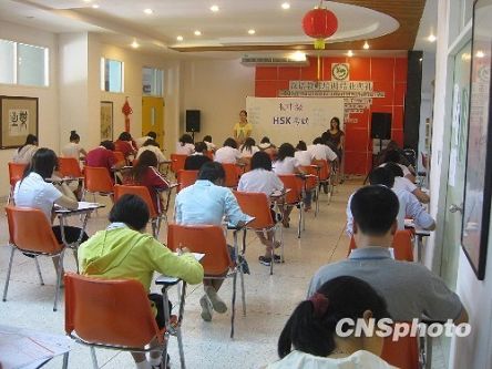 7月25日,泰國(guó)孔敬大學(xué)孔子學(xué)院舉辦今年的第一次HSK基礎(chǔ)級(jí)和初中等級(jí)兩個(gè)級(jí)別的漢語(yǔ)水平考試。據(jù)該孔子學(xué)院院長(zhǎng)黃曉明介紹,這些年,隨著孔敬大學(xué)孔子學(xué)院漢語(yǔ)教學(xué)和中國(guó)文化活動(dòng)的進(jìn)一步開(kāi)展,當(dāng)?shù)貙W(xué)習(xí)漢語(yǔ)的人數(shù)激增,參加HSK考試的人數(shù)也在逐次增加,考試的級(jí)別也在提高。原來(lái)孔敬大學(xué)孔子學(xué)院只開(kāi)設(shè)HSK基礎(chǔ)級(jí)考試,應(yīng)考生的要求,現(xiàn)在已經(jīng)開(kāi)設(shè)基礎(chǔ)級(jí)和初中等級(jí),而且這次參加初中等級(jí)考試的考生數(shù)量也比參加基礎(chǔ)級(jí)的考生數(shù)量多。(中新社/顧時(shí)宏 攝)