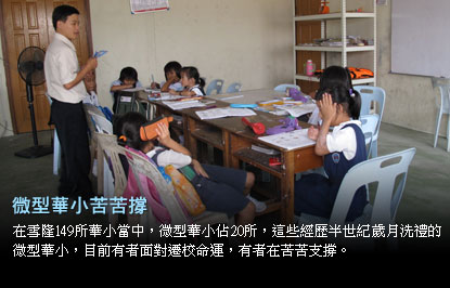 在這些微型華小當(dāng)中,除了大馬教育部曾于去年1月底宣布會(huì)遷校的4所華小之外,其余16所華小的命運(yùn),教育部都沒有做出任何指示。有的學(xué)校也不愿遷校,希望能繼續(xù)在現(xiàn)有地區(qū)繼續(xù)扮演提供華文教育的角色。