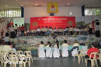 比賽正式開始了。半決賽采用的是分組答題的形式,13支代表隊通過回答30道題,決出了總分前5名參加決賽。決賽有兩道必答題,20道搶答題。題目內(nèi)容涵蓋了中國古代四大發(fā)明、四大名著、中國地理、中菲關(guān)系等歷史和時事題,同學(xué)們對中國知識的了解超乎想象,他們知道中國發(fā)明的地動儀,知道孔子說過“三人行必有我?guī)煛,文天祥的“人生自古誰無死,留取丹心照汗青”,以至于中國的國徽圖案,新中國建國典禮等等。參賽的同學(xué)在臺上聚精會神地答題,每答對一題,臺下就爆發(fā)出雷鳴般的掌聲和歡呼聲。到?jīng)Q賽的搶答題時,場上的氣氛達到了最高點,同學(xué)們都站了起來,為他們的隊伍搖旗吶喊。經(jīng)過激烈的角逐,最后帕西格市立科技中學(xué)獲得了第一名。