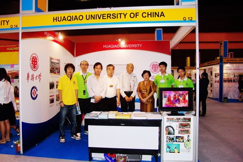 駐泰國(guó)代表處精心布置的展位醒目、美觀,電視播放的華僑大學(xué)美麗的校園畫(huà)面吸引了許多參觀者駐足觀看。同時(shí)代表處每天還安排校友及學(xué)校在泰國(guó)的教師志愿者等協(xié)助工作,他們通過(guò)自身學(xué)習(xí)經(jīng)歷,以中、泰、英三種語(yǔ)言,詳細(xì)介紹華僑大學(xué)和華文學(xué)院的情況。