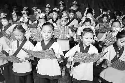 近日,蒙學(xué)讀物《弟子規(guī)》走進了北京市不少小學(xué)課堂。這只是國學(xué)熱的一場小景。穿漢服、行古禮、背儒經(jīng),越來越多的形式渴望上演一場逼真的國學(xué)普及盛況。此外,“天價國學(xué)班”光明正大地開班了,一些名校也開始成立或恢復(fù)設(shè)置國學(xué)研究院。