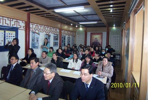 隨著蒙古國漢語教學的蓬勃發(fā)展,對本土漢語教師提出了更高要求。山東大學作為支持蒙古漢語教學的重點院校,在對蒙漢語師資培訓及教材建設(shè)等方面積累了豐富的經(jīng)驗,形成了一套針對性強、科學合理的培訓方法。受國家漢辦委派,山東大學國際教育學院黃歷鴻副院長和黑琨副教授專程赴蒙承擔此次師資培訓任務,根據(jù)蒙古國漢語教師的實際需要,開設(shè)了“漢語閱讀教學”、“漢語口語教學”、“漢語寫作教學”、“漢語聽力教學”及“中國文化講座”等課程。授課主要采用案例分析、教學錄像觀摩、課堂討論和課堂設(shè)計相結(jié)合的方式進行,以達到提高本土漢語教師綜合執(zhí)教水平的目的。