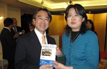 3月25日晚,日本眾議院議員、日中友好議員聯(lián)盟干事長近藤昭一在東京親切會見了日本僑報社社長張景子。張景子向近藤昭一介紹了有關(guān)中日作文大賽、特別是將于30日舉行的第五屆日本人漢語作文大賽頒獎式的情況,并向他贈送了剛剛出版的獲獎作品集《致中國旅行者--日本人的心聲》。近藤昭一勉勵日本僑報社繼續(xù)努力,為推動中日進(jìn)一步友好作出更大的貢獻(xiàn)。圖為張景子向近藤昭一贈送《致中國旅行者》。 中新社發(fā) 段躍中 攝