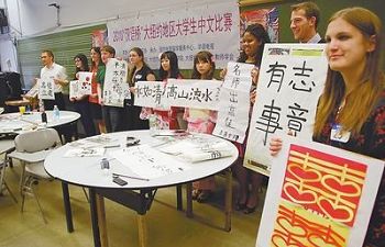 中新網(wǎng)4月6日電 據(jù)美國(guó)《世界日?qǐng)?bào)》報(bào)道,美國(guó)大紐約地區(qū)“漢語(yǔ)橋”大學(xué)生中文比賽4月3日分別在紐約大學(xué)和俄亥俄州立大學(xué)舉行初賽,80多名美國(guó)學(xué)生參加了初級(jí)組和高級(jí)組比賽。