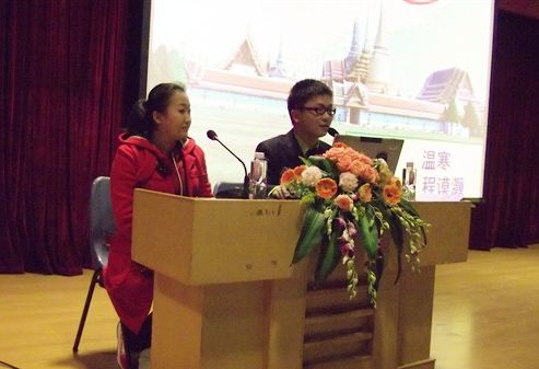 程謨?yōu)瓰槿A僑大學(xué)華文學(xué)院2009屆對(duì)外漢語專業(yè)畢業(yè)生,溫寒為文學(xué)院2009屆廣電專業(yè)畢業(yè)生,兩人于2009年被派往泰國(guó)擔(dān)任漢語教師志愿者。(王若凡 文/圖)