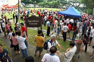 中新網(wǎng)5月11日電 據(jù)新加坡《聯(lián)合早報(bào)》報(bào)道,5月9日,數(shù)千名新加坡公眾在慶祝母親節(jié)之際,采取行動對母語表達(dá)了一份深切關(guān)懷。他們在舉家外出用餐時,首先前往芳林公園演說者角落,以簽名方式表達(dá)了對母語的一份熱愛。前后兩個小時的活動,收集了至少2400個簽名。
