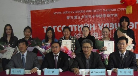 中新網(wǎng)5月26日電 據(jù)國家漢辦網(wǎng)站消息,5月21日,蒙古國立大學(xué)孔子學(xué)院隆重舉行了春季學(xué)期結(jié)業(yè)典禮。院長于健、副院長其米德策耶、院長助理朱軍利及專家教師烏蘭哈達(dá)出席了結(jié)業(yè)典禮。
