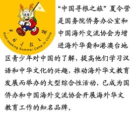 美國《僑報》記者吳健:美國華裔青少年參加“中國尋根之旅夏令營”的目的已不僅僅局限于簡單的開拓視野和尋根問祖,還包括幫助他們認同文化身份和未來事業(yè)發(fā)展。