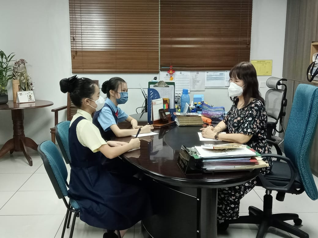 2022年7月4日下午一時半,吉隆坡坤成華小一校Z世代華星小記者第二期校園專訪正式開始。第二期校園專訪,徐瑀瞳同學(xué)和陳思穎同學(xué),通過小記者采訪室即谷歌視頻會議,連線對坤成華小一校的校長——張金燕校長進(jìn)行線上采訪。