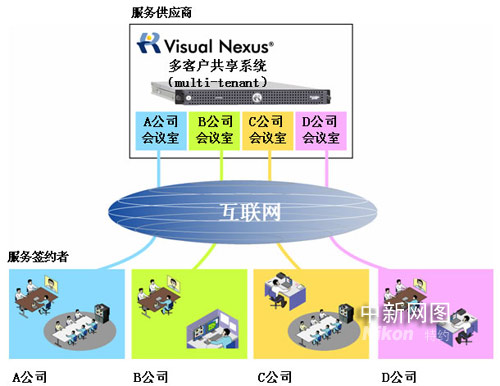 而且,包括SaaS的ASP服務(wù)需求也日益高漲,以提供視頻會(huì)議的ASP服務(wù)的服務(wù)供應(yīng)商為對(duì)象,采用了多家企業(yè)(客戶)能共享視頻會(huì)議系統(tǒng)的同時(shí),又能單獨(dú)給個(gè)別企業(yè)提供服務(wù)的多客戶共享(multi-tenant)功能。從而實(shí)現(xiàn)系統(tǒng)運(yùn)用效率最大化,降低管理運(yùn)用成本。
