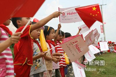 運(yùn)動會結(jié)束了,獲勝的孩子們將福娃禮品緊緊的抱在懷中,那似乎就是他們的幸福,就是奧運(yùn)冠軍和海爾為他們帶來的希望。