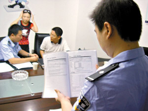 警察向記者展示網(wǎng)上招嫖的價(jià)目表資料圖