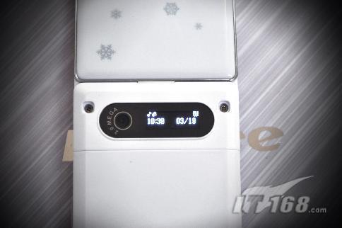 在koobee K75的后蓋上部,有一個(gè)小小的液晶屏幕,顯示效果優(yōu)良,可以讓你不用翻蓋就一目了然地知道是誰(shuí)的來(lái)電,非常體貼的設(shè)計(jì)。