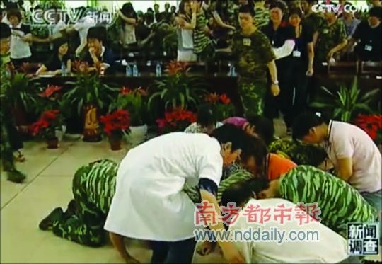 當著《新聞調查》節(jié)目組的面,楊永信在一次點評課后接受了十幾名接受治療的孩子及其家長的跪拜感謝,楊永信稱這樣的場景讓他很激動,覺得自己的付出值了。